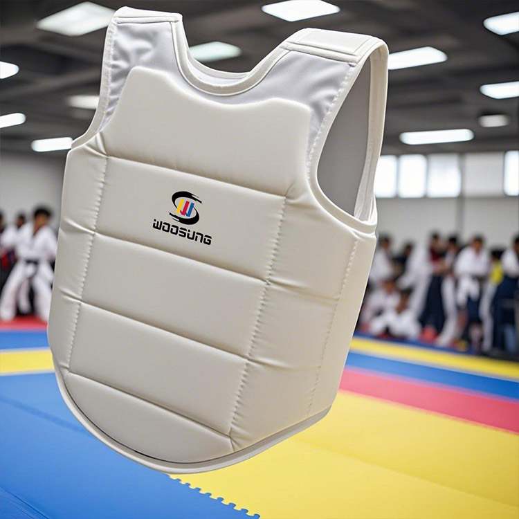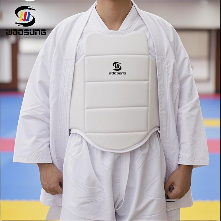 WOOSUNG při návrhu PU karate hrudního chrániče plně zohlednil vlastnosti tvaru ženského těla: